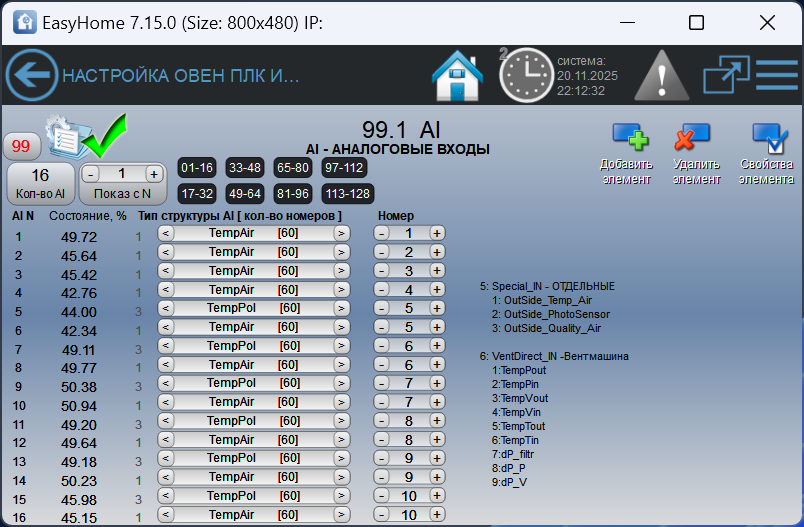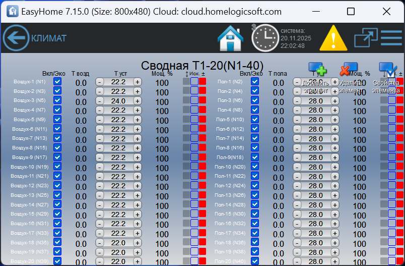 Страницы ИНЖЕНЕРНОГО интерфейса для настройки КЛИМАТА в умном доме EasyHome: