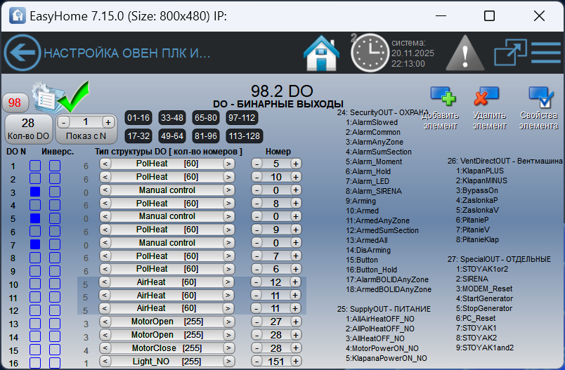 - сигнал выключения всех радиаторов - сигнал выключения всех тёплых полов - сигнал выключения всех нагревателей |