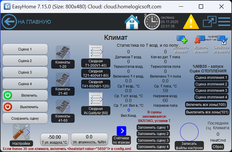 3) Выделение зон "исключений" на которые не действуют глобальные сцены, автоматическое переключение режимов климата и они не учавстсвуют в счётчиках.