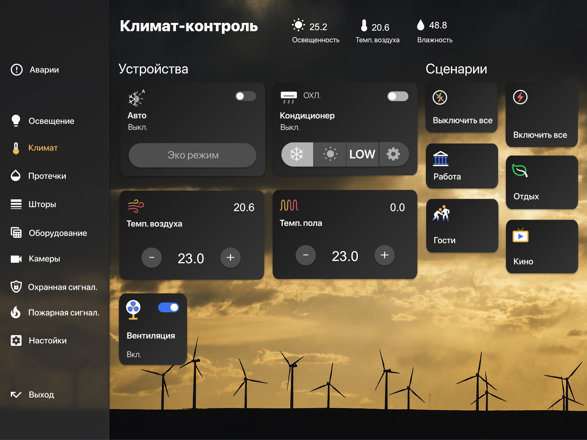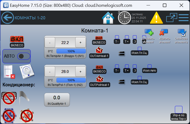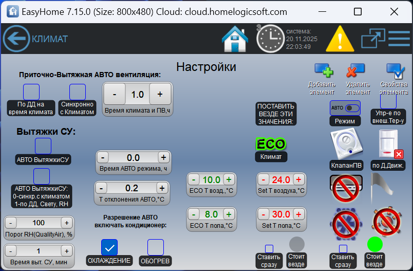Встроенные функции управления климатом в системе Умный Дом EasyHome: