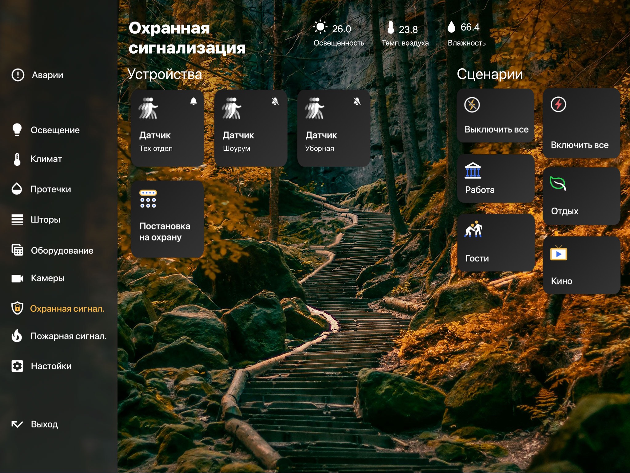 Встроенные функции ОХРАННОЙ СИГНАЛИЗАЦИИ в системе Умный Дом EasyHome: