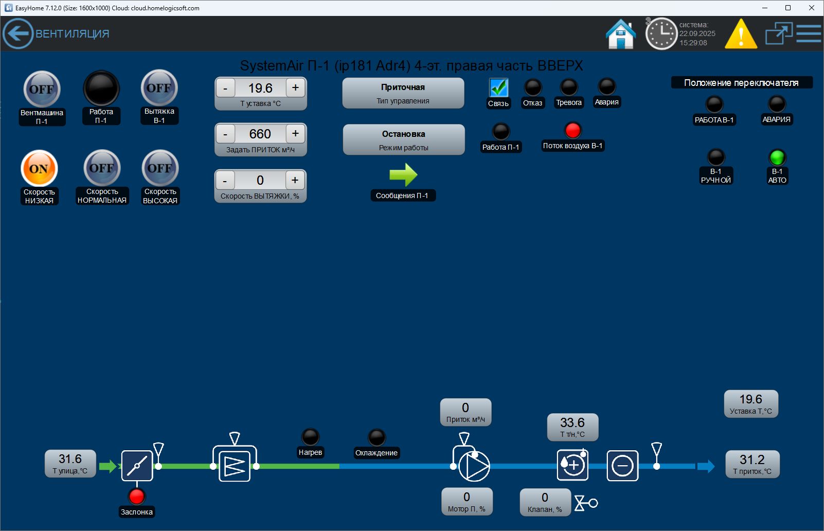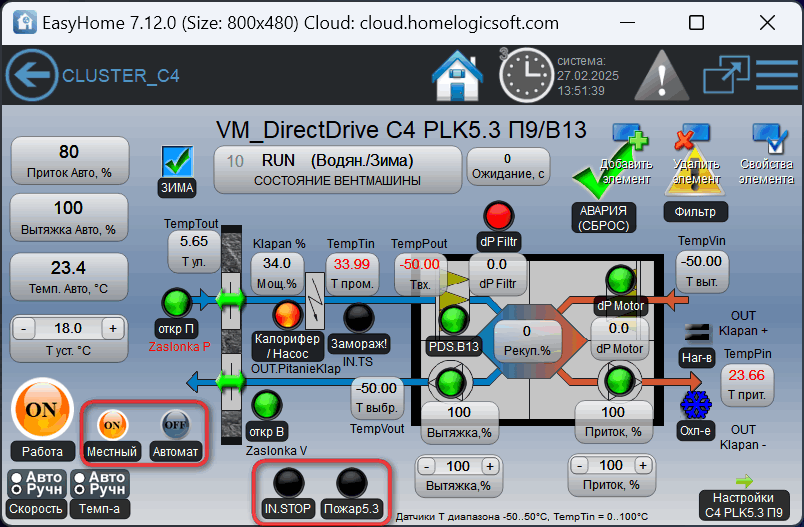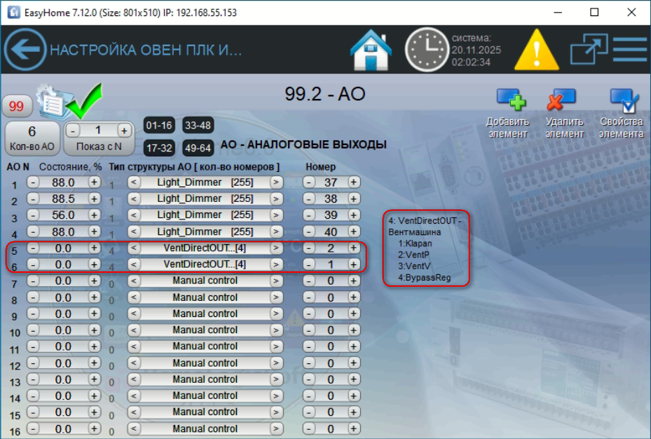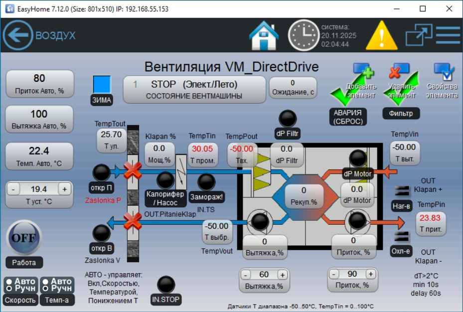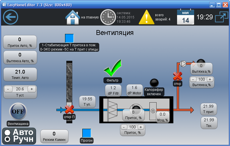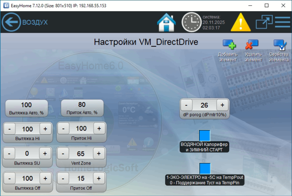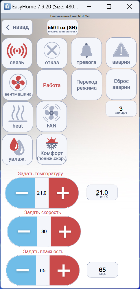 Встроенные функции прямого управления вентмашиной в системе Умный Дом EasyHome: