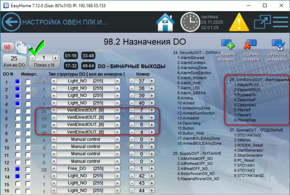 - DO включение приточного вентилятора - DO включение вытяжного вентилятора - DO включение нагревателя / насоса |