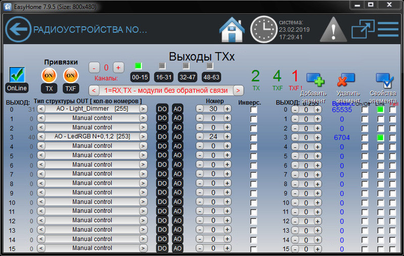 - 64 реле и диммера без обратной связи стандарта nooLite, в том числе 3х канальные RGB диммеры светодиодных лент