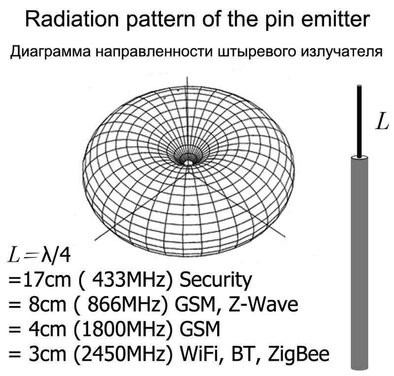 | Antenna 433MHz SMA - антенна с проводом 3м - необходима для вывода сигнала из щитков - немного улучшает качество связи Цена: ~1000 рублей |