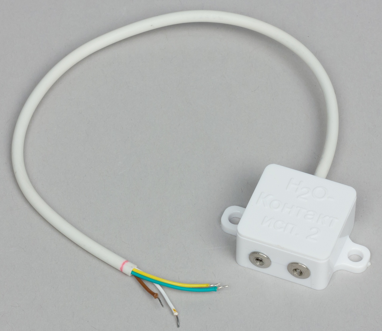 В данном случае использовалась модель «Альянс «Комплексная безопасность». Датчик имеет компактный корпус (защита уровня IP55) с парой электродов из нержавеющей стали. Расположить его нужно в непосредственной близости от пола или прямо на полу.