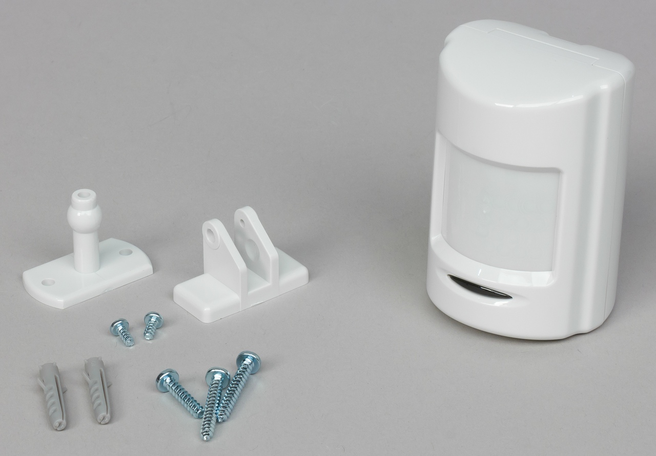 Для подключения внешних датчиков применяются цифровые и аналоговые входы. Напомним, что все датчики должны подключаться непосредственно к контроллеру, каждый своим кабелем на свой входной порт. Одним из наиболее распространенных в автоматизации является датчик движения. В данном случае можно использовать любые модели от стандартных охранных систем с питанием 12 В и встроенным реле на замыкание. При желании можно подключить к контроллеру и кнопку открытия корпуса датчика. В данном тестировании использовалась модель FP0572 компании Pyronix.