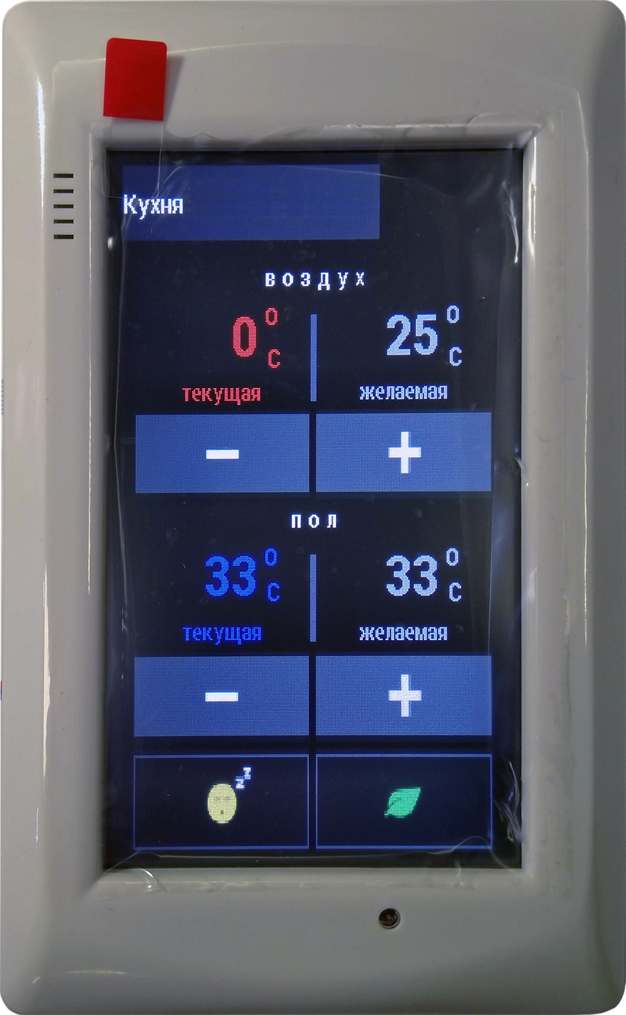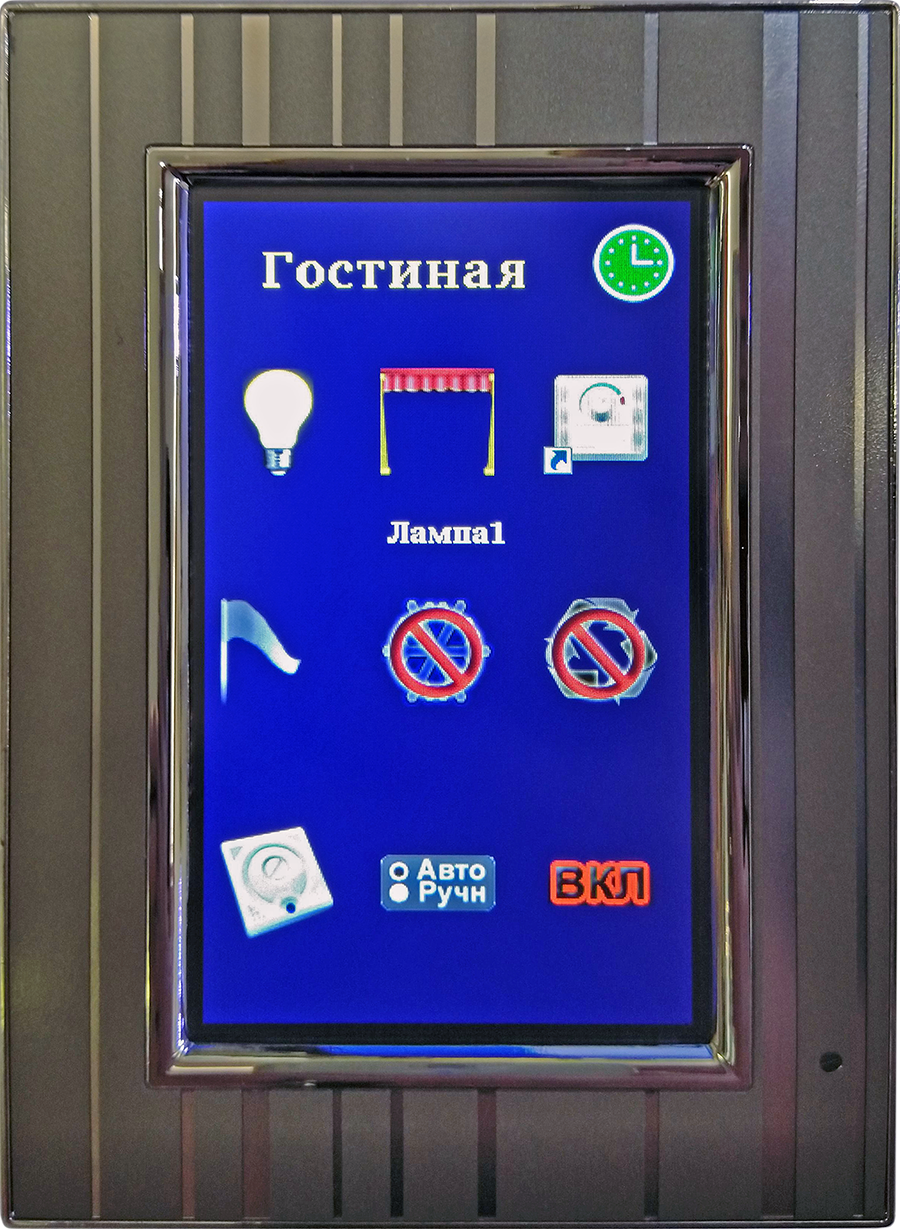Разрешение экрана: 320x240 и 480x272 Диагональ экрана: 2.8" и 4.3" Тачпанель предназначена для работы в системе EasyHome в качестве стационарного комнатного выключателя света, сценарного выключателя, панели управления отоплением и кондиционером. Подключается к контроллеру системы через Ethernet по протоколу ModbusTCP. Дублирует соответствующие кнопки интерфейса пользователя EasyHome для Windows, Android, iOS, но функционал ограничен: 2 экрана, по 9 кнопок. Числовой контрол, для отображение и изменения температуры, занимает 3 кнопки. Для ввода в эксплуатацию и настройки не требует никакого ПО: все параметры работы, назначения и типы кнопок настраиваются прямо на панели в инженерном меню.